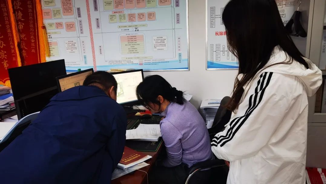 现代农牧业公司工作人员前往不动产登记中心,就原独贵小学的办理产权证的进展情况进行咨询。