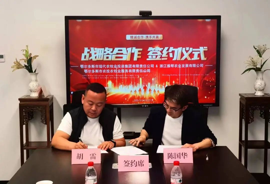 农牧业服务公司胡雷、吴强到杭州浙江振邦农业发展有限公司对接洽谈初级农产品销售及农贸市场深度合作事宜,在与振邦农业公司管理层深入交流后,双方就合作事宜达成共识并成功签订《优势产品互采战略合作协议》。