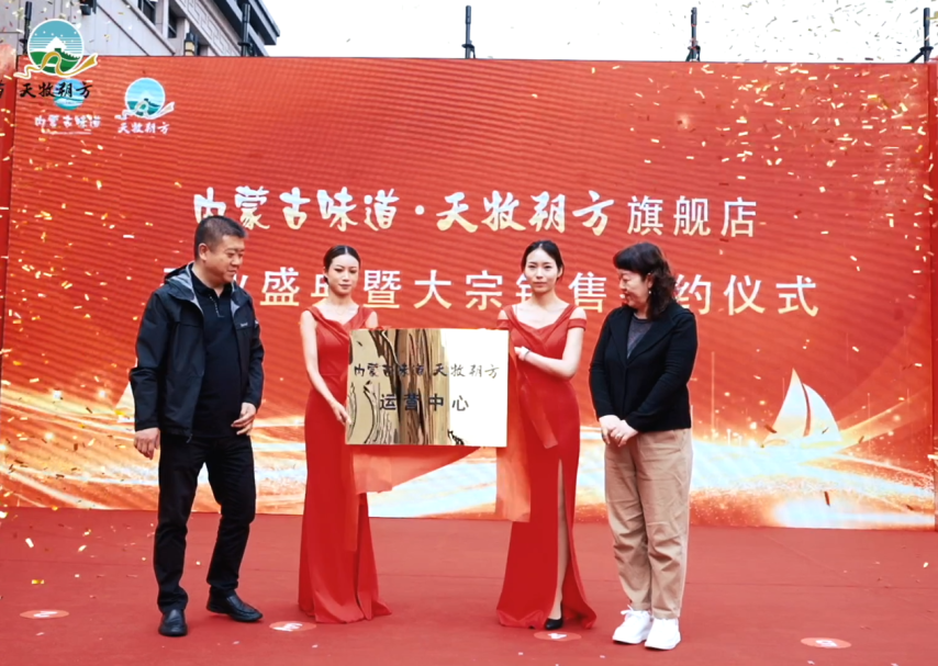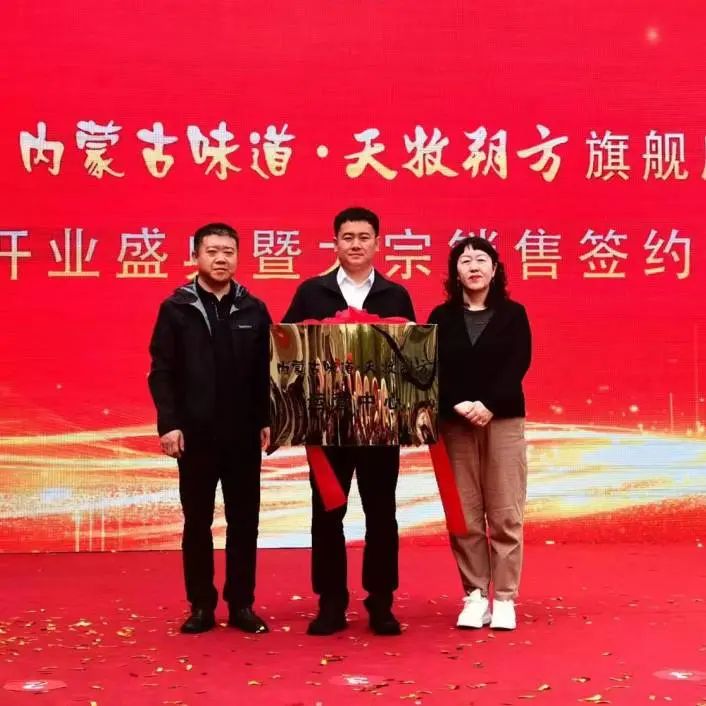 "内蒙古味道•天牧朔方"旗舰店开业庆典暨大宗销售签约仪式在呼和浩特市隆重举行。内蒙古自治区商务厅、农牧厅、文旅厅、杭锦旗人民政府等有关领导出席活动仪式并参与现场指导。同时,全国蒙商会、上海、山东、浙江、重庆、陕西、深圳内蒙古商会也受邀参与,共同见证这一盛事。庆典仪式上,集团公司李锋发表了热情洋溢的开业致辞,对来宾表示热烈的欢迎和衷心的感谢。自治区商务厅有关领导亲自为“内蒙古味道•天牧朔方”运营中心揭牌,象征着品牌的正式起航。陈龙代表集团公司接受了这一荣誉,并与京能集团、正大集团、上海蔬菜集团、广东省供销社、上海市自有品牌协会、青岛万家惠、重庆内蒙古商会、北京紫琼楷翊商贸有限公司、浙江振帮农业发展有限公司、上海原上蒙塔尼实业公司等10余家企业代表完成了大宗销售签约仪式。这一系列的合作签约,不仅展示了品牌的实力与魅力,也为产品的市场拓展打下了坚实的基础。此次开业盛典不仅是一次品牌的展示,更是一次企业间紧密合作的契机。通过这一活动,内蒙古优质农畜产品得以更广泛地展示和推广,同时也为企业间的深入合作提供了更多的机会和可能。未来,“内蒙古味道•天牧朔方”旗舰店将以其独特的魅力和优质的产品,为消费者带来更多的惊喜和选择,同时也将为企业的发展注入新的活力和动力。