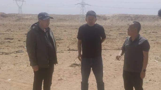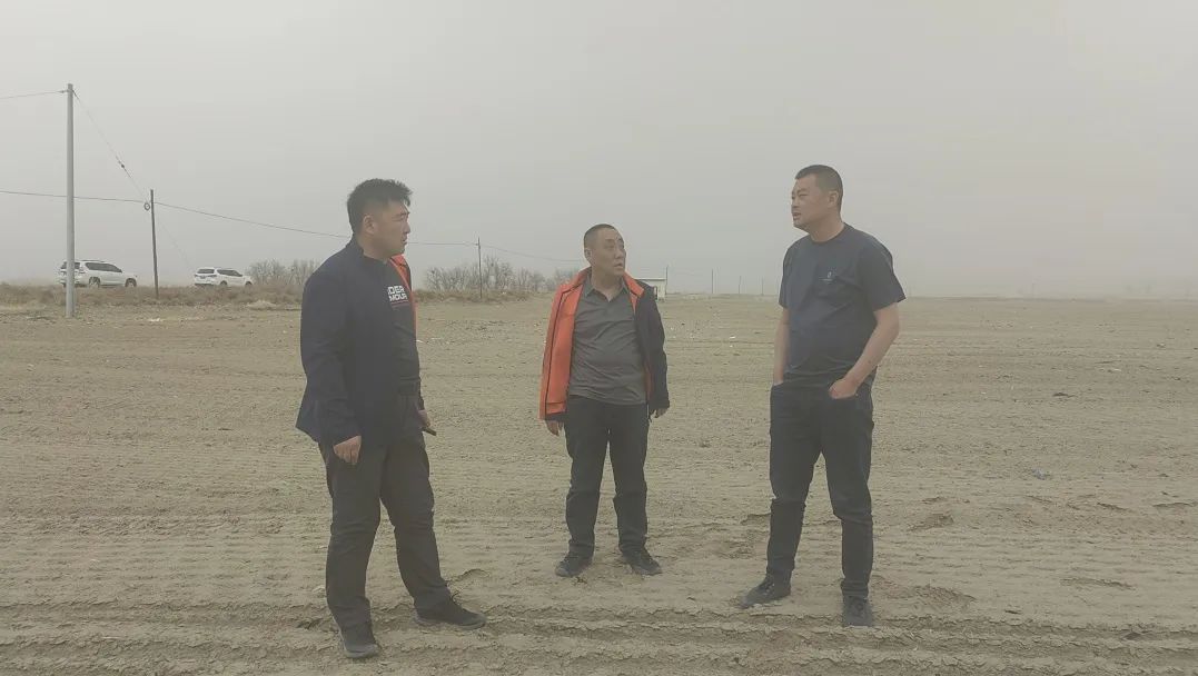 现代农牧业公司王雄、王少波与独贵塔拉镇供电所相关领导到独贵塔拉镇1924亩耕地,实地勘查并研讨用电线路的布局与走向。