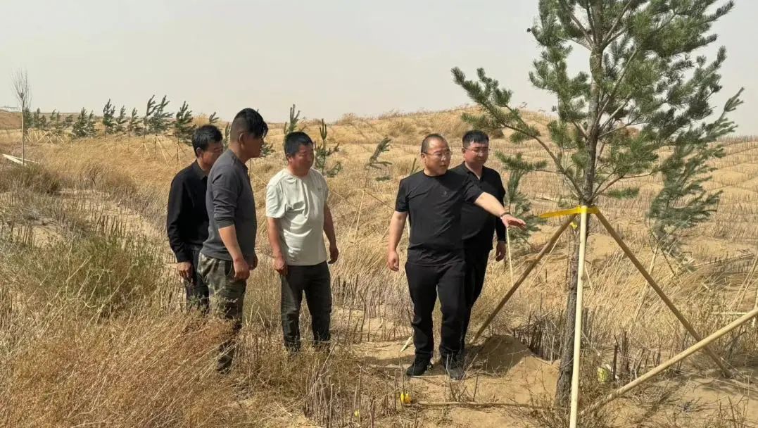 集团公司李锋与旗林草局工作人员共同前往吉日嘎朗图镇临河南收费站,就道路两侧行道树的种植细节,包括苗木的高度、胸径、种植深度以及支架的固定等方面,与施工负责人进行了深入沟通交流并前往了黄河几字弯项目的G242线2号观景台,针对平台和木栈道,提出全面而有效的防沙措施部署方案。