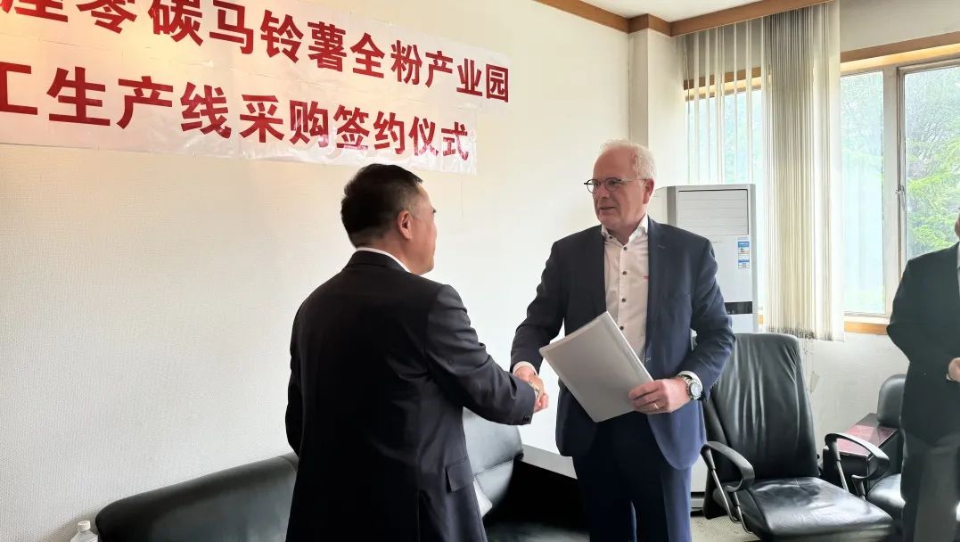 集团公司陈龙、韩跃前往北京,出席并见证合作方内蒙古百肯农业科技公司与荷兰汤马斯机械有限公司关于马铃薯全粉加工生产线的订购签约仪式。此次签约,意味着全球顶尖的马铃薯全粉生产线将在我旗落地,标志着我旗科技兴农、现代化规模农业的新起点。双方的合作将有力推动我旗农业产业的发展,提升农产品加工技术水平,为农民增收、农业增效注入新的活力。