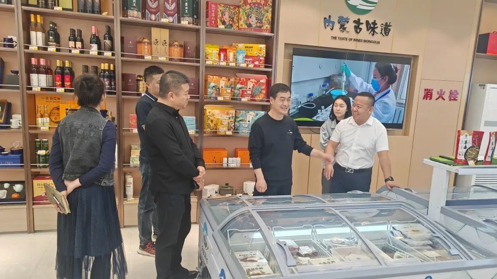 集团公司陈龙、李锋陪同旗政府分管领导前往呼和浩特市内蒙古味道·天牧朔方农产品旗舰店对开业前夕筹备工作进行实地查看。对店面布局、产品陈列以及销售情况进行详细了解,与员工进行深入交流,询问关于产品来源、销售策略等方面的问题,重点关注农产品的质量、价格以及市场推广情况,以确保这些产品能够满足消费者的需求并具有良好的市场竞争力。