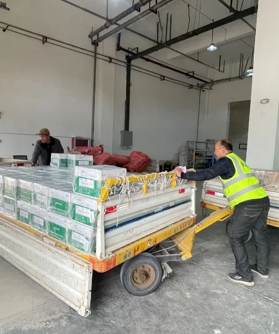 为了让喀什本地特色产品更快运送到目的地,早上8:40分,喀什蓝天迅达货运代理服务有限公司工作人员就开始忙碌起来,仓库内工作人员将发往北京、济南等地的各色干果、手工艺品和新鲜羊肉,打包装车,随后这些货物将乘坐飞机进入各大商超、餐厅进行销售。便捷的运输效率,让全国各地的消费者所在的城市就能品尝到喀什的美食。