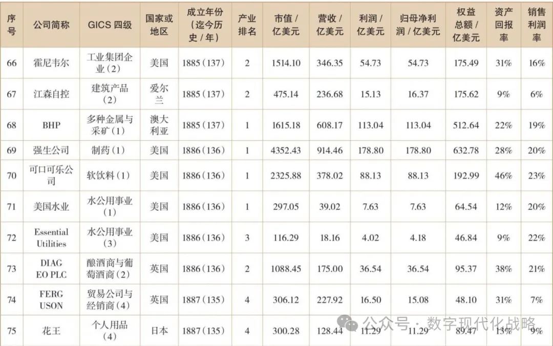 可以设想,如果一个产业里的领军企业都是百年企业,其产业地位是很难被撼动的。