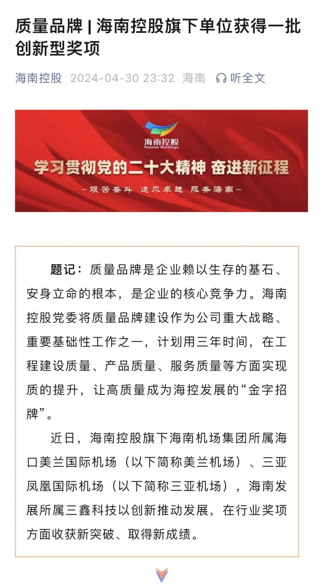 质量品牌 | 海南控股旗下单位获得一批创新型奖项