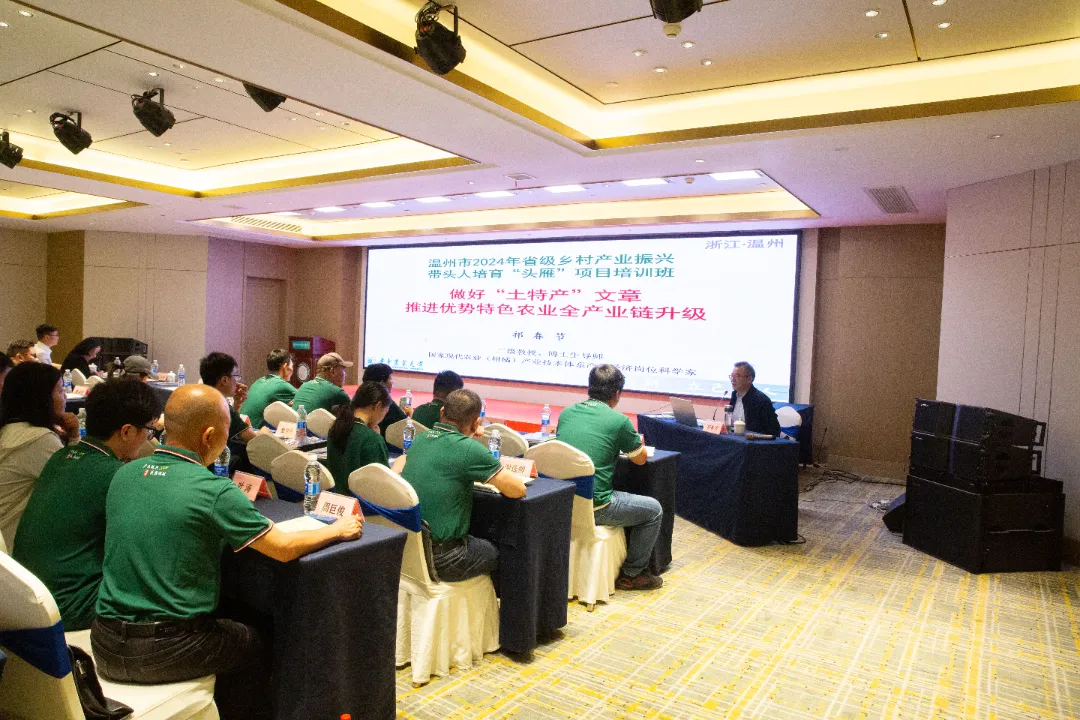 据悉,温州市2024年度省级乡村产业振兴带头人培育“头雁”项目开设农业企业(预制菜)、柑橘产业、渔业产业3个专题班,共计招收学员 120 人,将围绕“六个一”等“土特产”提升开展重点培育,不断激发“头雁”示范引领和辐射带动作用,形成头雁领航、群雁齐飞的格局。