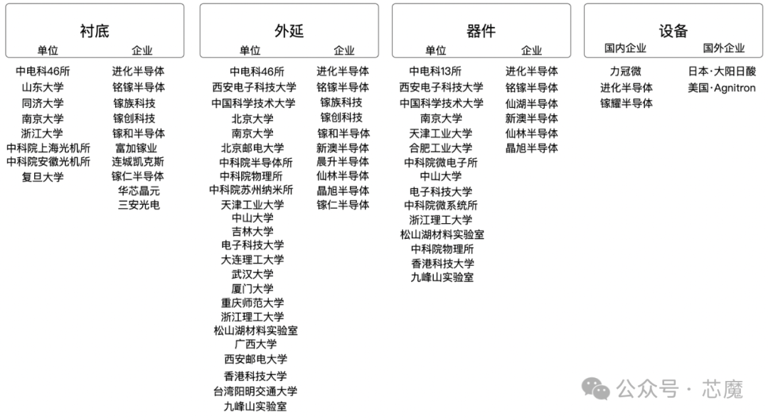 外延环节和器件环节,有更多团队加入,其中九峰山实验室在化合物领域有深厚积累,期待其带来更先进的外延和芯片制程工艺。