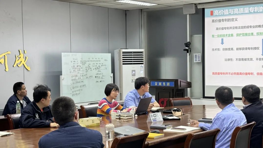 2024年4月26日,在第24个世界知识产权日当天,专利八部部长李倩应南京金城机械有限公司邀请参加知识产权周专题培训活动,金城集团科技委办公室主任李德生、金城机械副总经理许晨杰、金城机械研发部副部长董雯功以及金城机械采购部副部长胥银燕出席培训会,金城机械全体技术人员参加培训会。