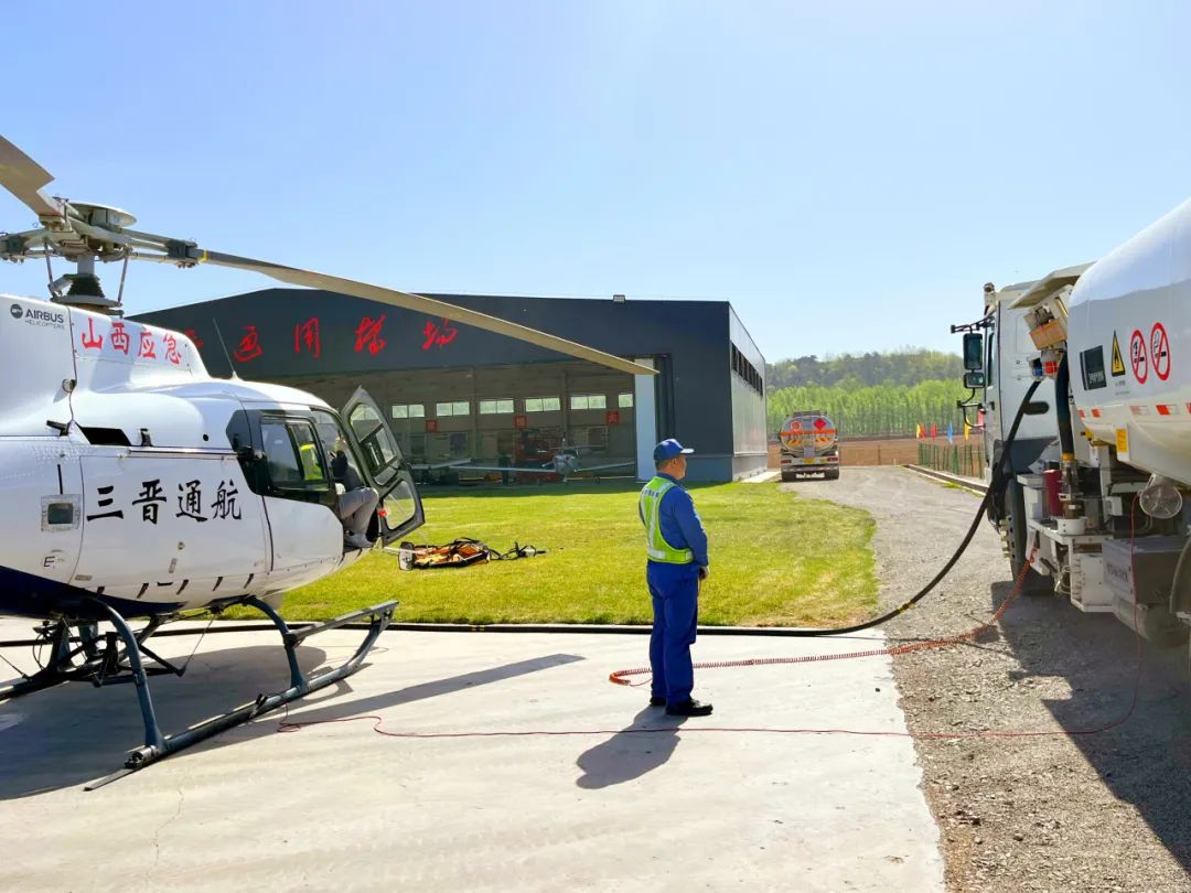 2024年4月23日,临汾市安泽县突发山火,火势迅猛蔓延,情况危急,山西省应急厅派出米-171和H125直升机开展应急救援,中国航油山西分公司综合考虑各项因素,最终决定由临汾供应站承担此次救援飞机供油保障任务。