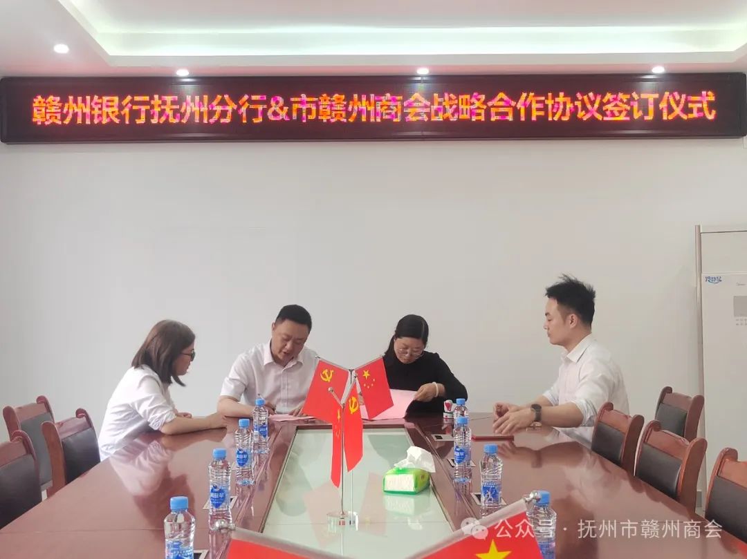 ★★★4月24日,赣州银行抚州分行与抚州市赣州商会《战略合作协议》签订仪式在商会进行,赣州银行抚州营业部主任刘敏等参加。