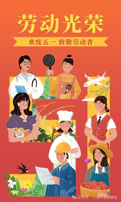 上海市闽侯商会会长叶顺、监事长林靖、秘书长张秋携全体会员向工作在各个岗位上的全体劳动者和关心支持商会工作的社会各界人士、广大乡贤、全体会员及家属致以节日美好的祝愿和崇高的敬意!祝大家身体健康,工作顺利,阖家幸福!劳动节快乐!