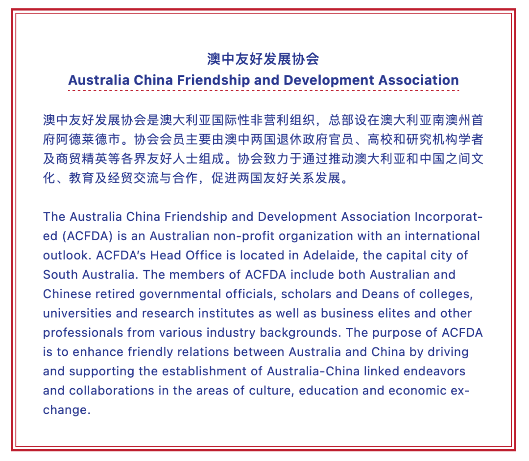 澳中友好发展协会将继续致力于推动澳大利亚和中国之间文化、教育及经贸交流与合作,促进两国友好关系发展。