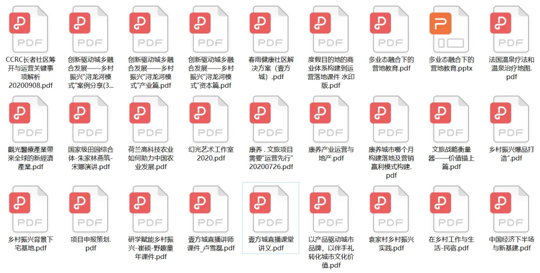 农文商康旅项目知识干货内容,包括但不限于乡村振兴/康养文旅、田园小镇项目顶层战略、产业IP、一体化内容设计精彩案例解读等。精选标杆案例、体验最新内容,从综合体运营到业态创新共同到一线学习、思考、收获,截至目前已更新600多节专业课程。