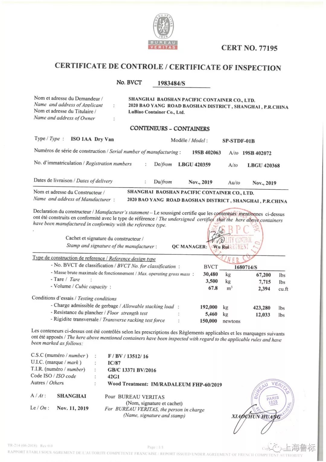 (2)40x8x8英尺6英寸,简称40尺货柜(内径:12024*2352*2390mm);