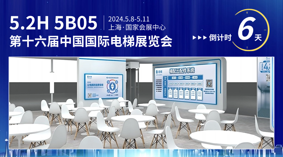 第十六届中国国际电梯展览会,将于2024年5月8日至2024年5月11日在上海国家会展中心盛大举行,为期4天。易梯展位位于5.2H 5B05,诚挚邀请业内伙伴莅临展位,亲自体验我司新业务所带来的震撼!