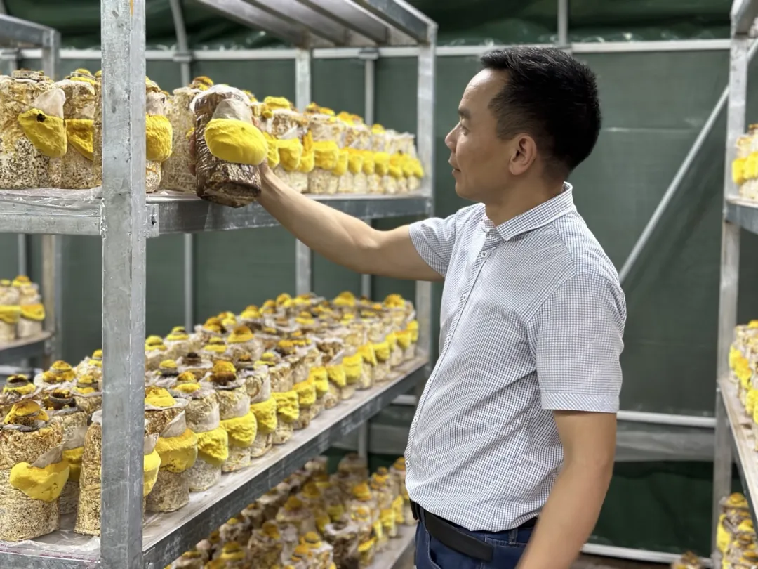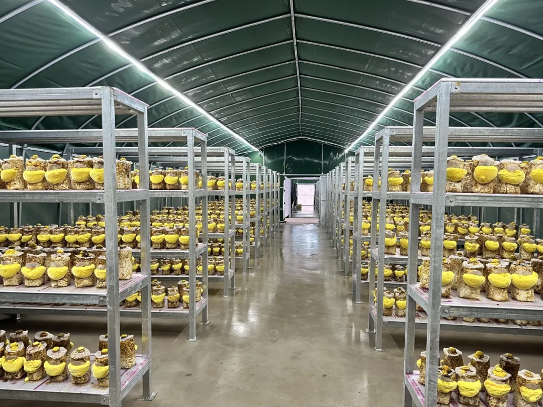 这几日,在温宿国家农业科技园区的智能温室内,11 万只桑黄菌棒上,渐渐露出迷人的金色。金华市农科园援疆“小组团”将在浙江完成中试的桑黄人工培育成果,成功落户温宿。种植基地里,浙江科技特派员们正在忙着检查桑黄的成长情况,今年第一批桑黄预计6月份上市销售,这也标志着温宿县农业特色产业又增添了一个“新成员”。