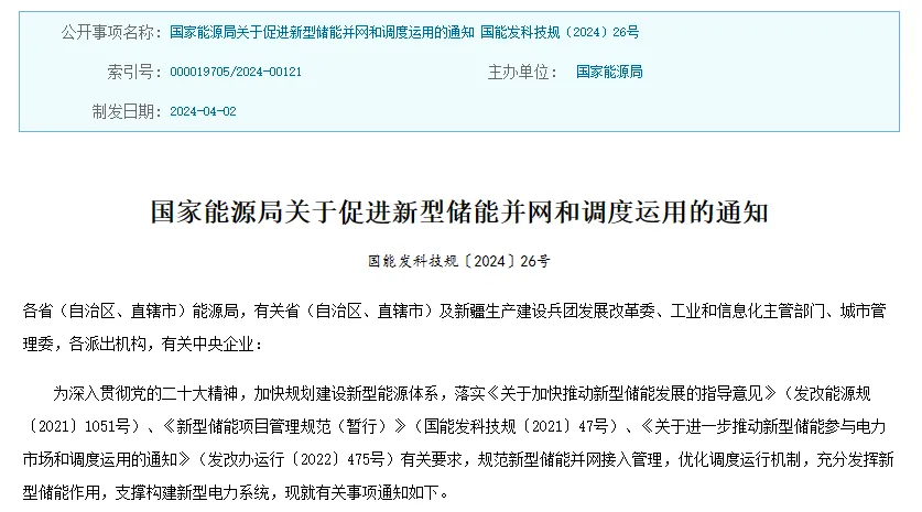 国家电网国家电力调度控制中心解读“新型储能并网新政”