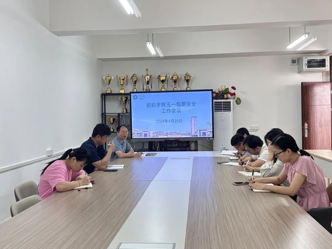 此次假期前安全工作会议,是落实省教育厅、学校安全工作会议精神的体现,纺织学院将对照工作清单,从严从速落实学院维稳举措,全力补短板、堵漏洞,保证师生度过一个安全、快乐的五一假期。