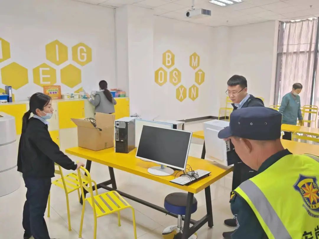 岚山文化服务中心科技馆对“科技馆里的科学课”五一活动进行场地布置。