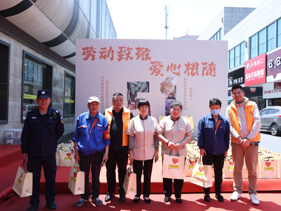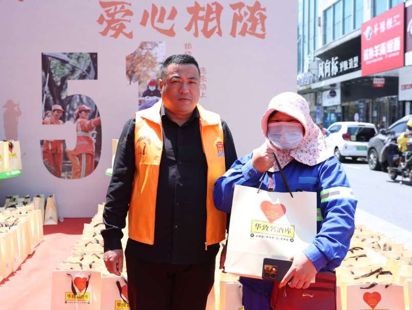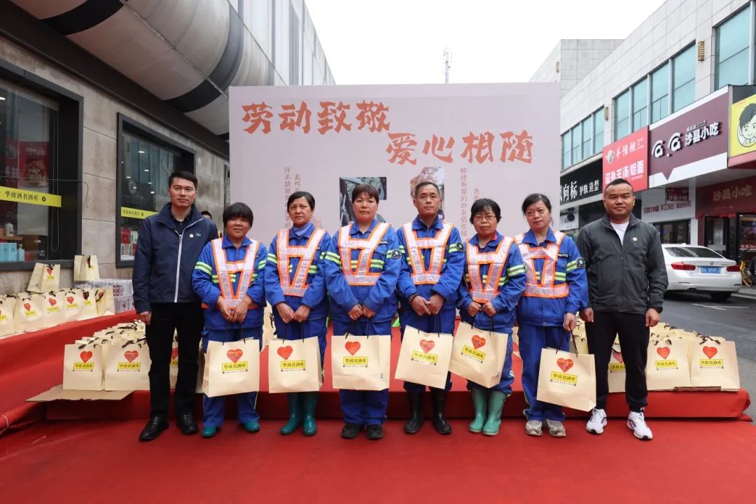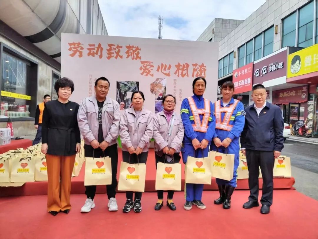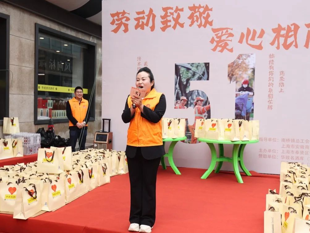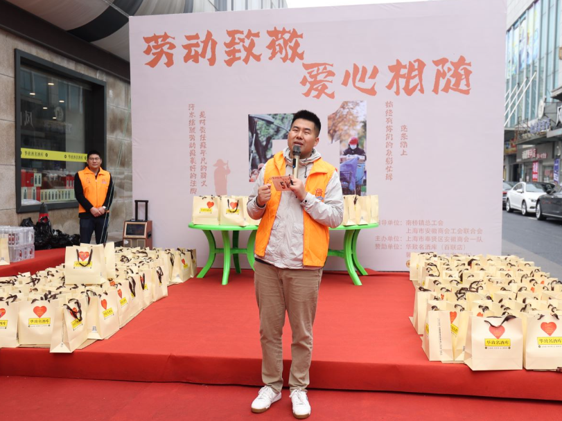 5月1日,在南桥镇总工会、上海奉贤安徽商会工会联合会的指导下,商会一队部分志愿者在华致酒⾏百联店开展“劳动致敬,爱心相随”五一劳动节关爱活动,向辛勤工作的环卫工人和快递小哥们道一声辛苦,送一份温暖。活动由商会副会长、一队指导员吴飞带队,队长卜环国主持。