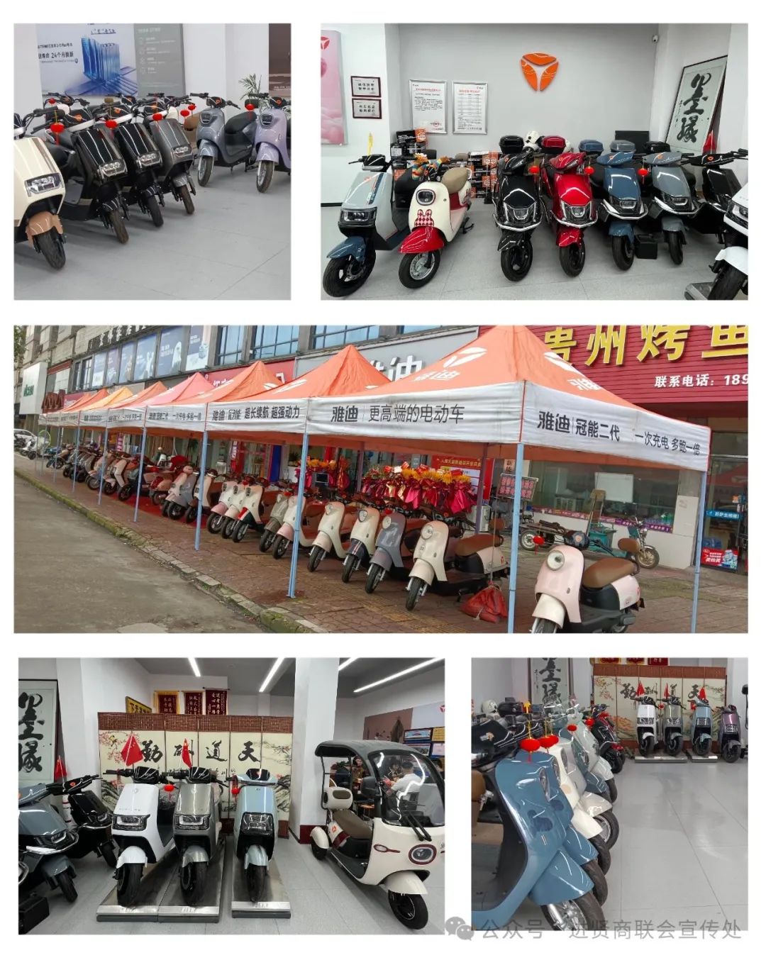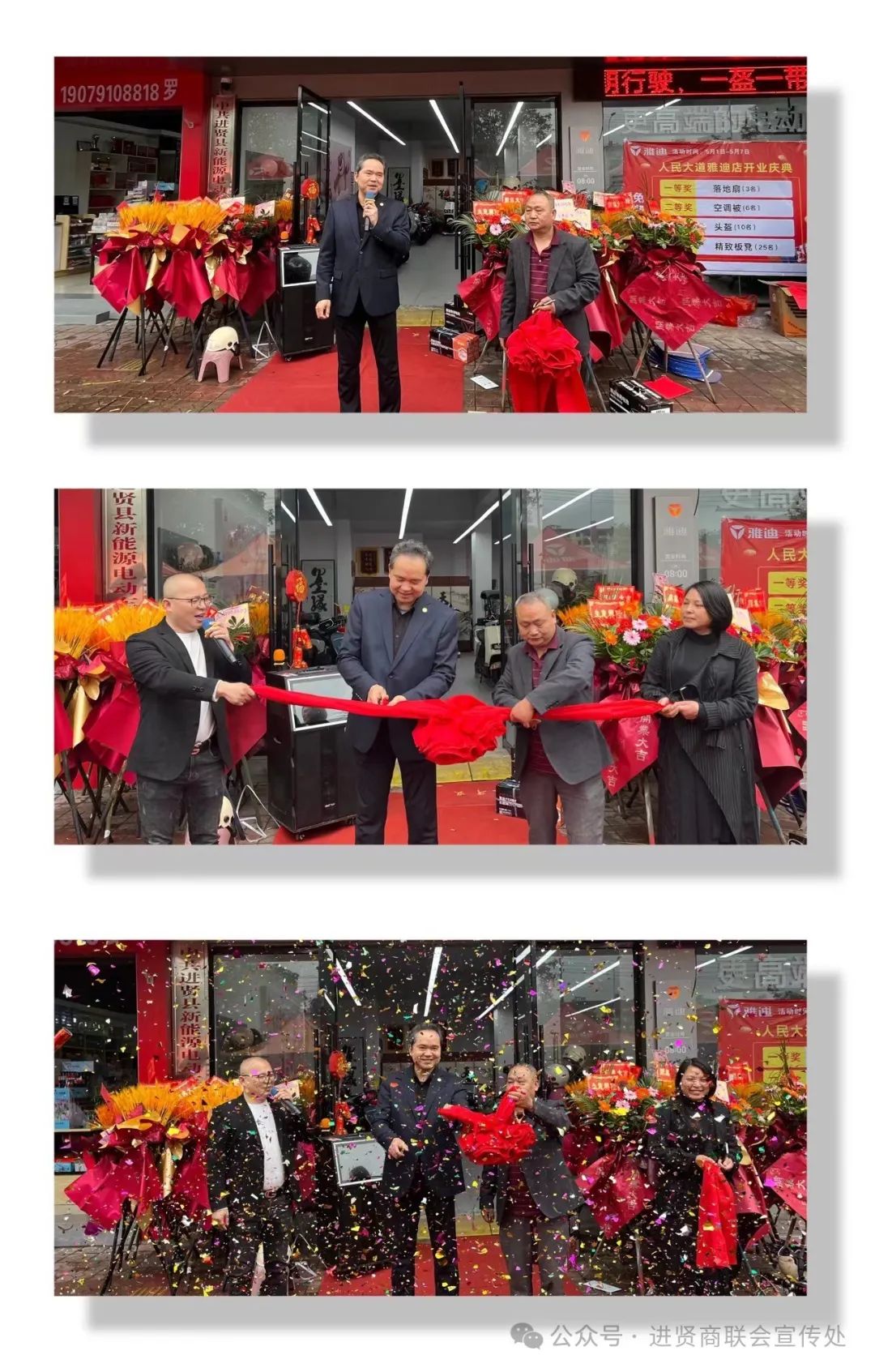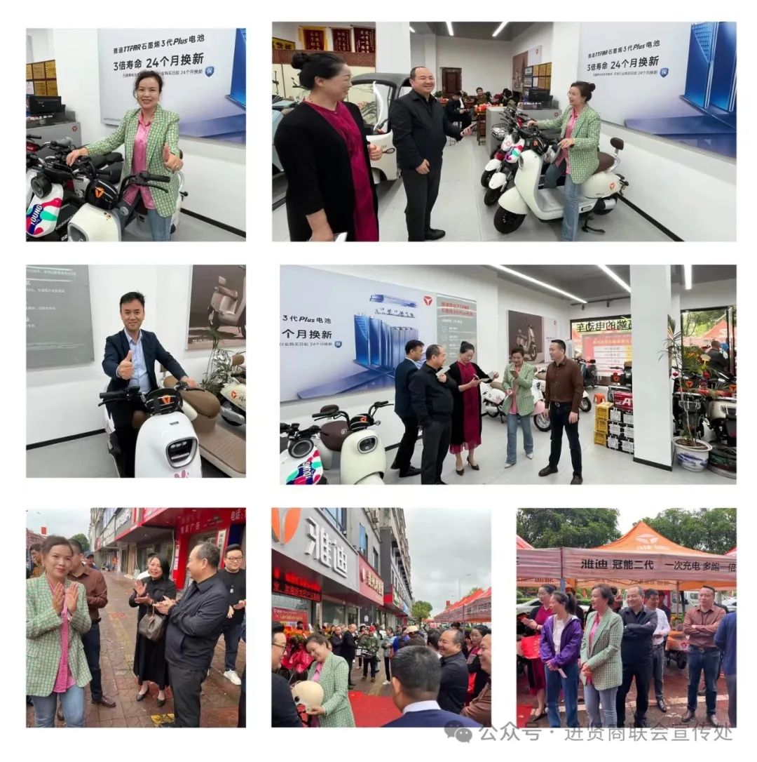 2024年5月1日,进贤县商业联合会会员单位:雅迪电动车盛大开业!开业庆典现场喜庆洋洋、热闹非凡。县委统战部副部长、工商联党组书记曹旭标,进贤县商业联合会执行会长李振勇,常务副会长陶守防,副会长舒连香,常务理事黄优兰、彭海云、谭玲香、会员方勇、蔡春初等人出席开业庆典并表示祝贺!