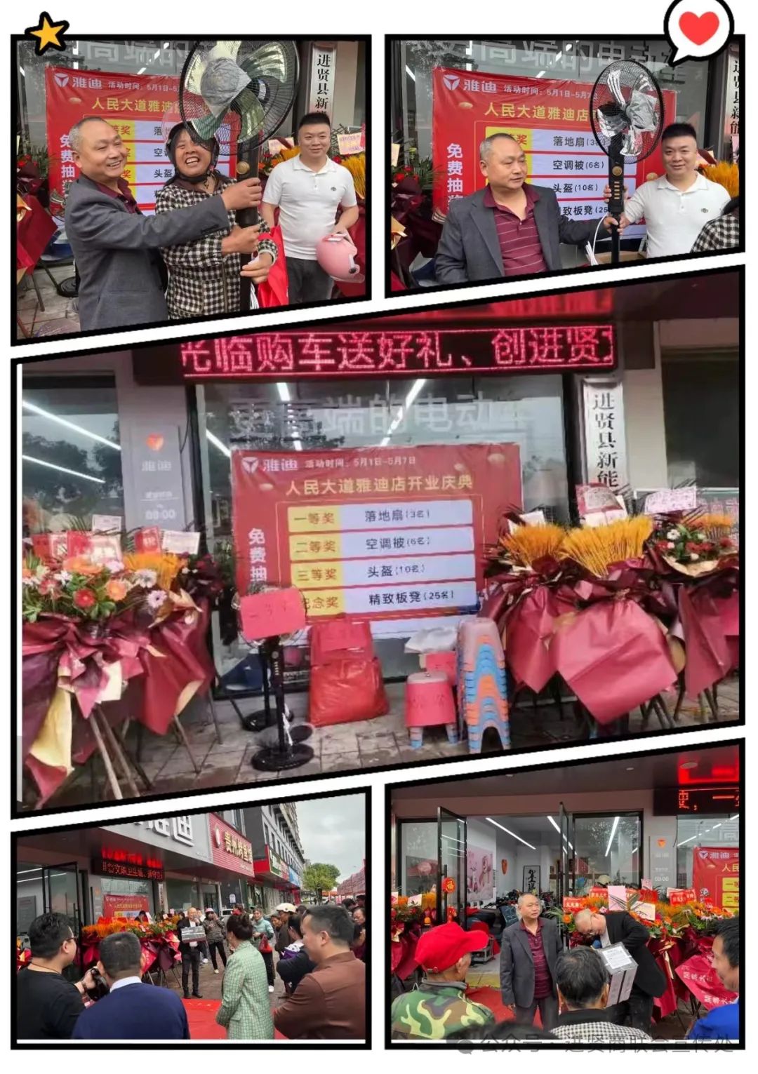 现场嘉宾云集,气氛十分热烈喜庆,互动抽奖环节更有落地扇、空调被、头盔、精致板凳等丰厚奖品。