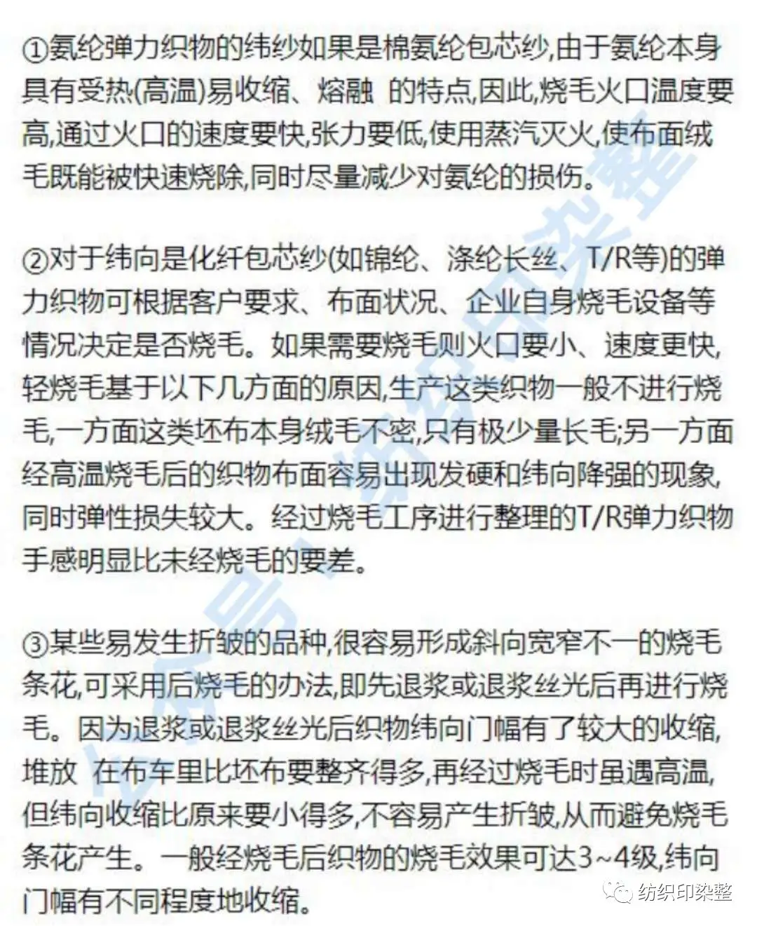 (2)烧毛:烧毛是加工环节中的重要工序之一,烧毛的好坏直接影响成品的品质。