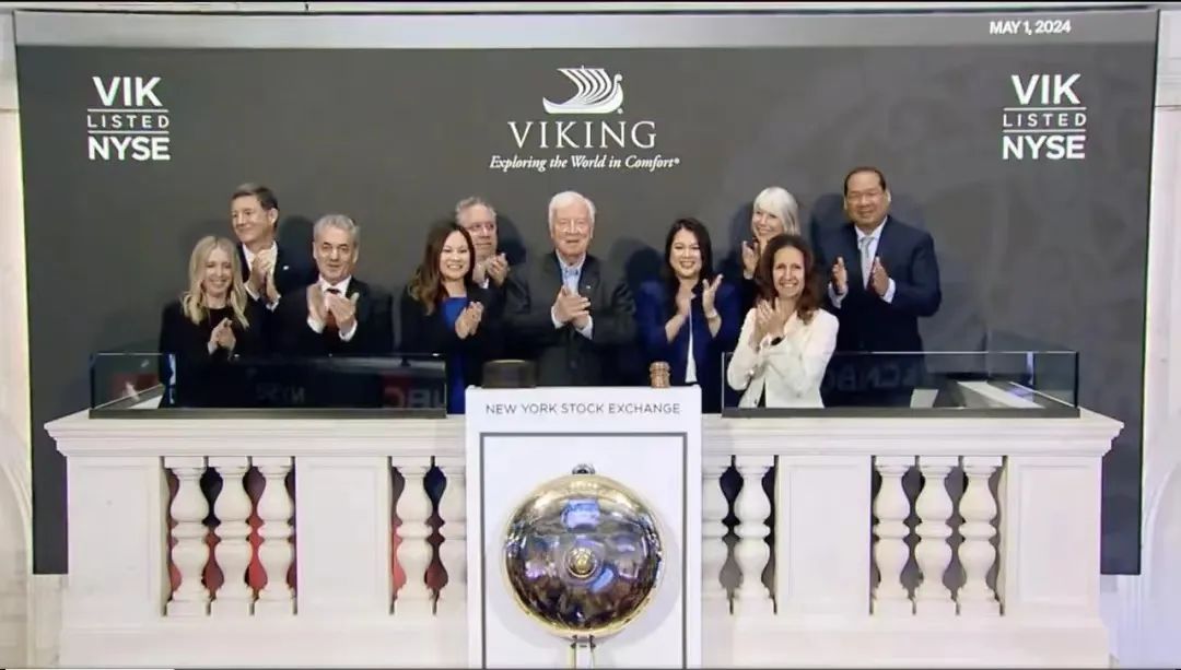 国际游轮巨头维京控股(Viking Holdings Ltd)5月1日正式在纽交所上市,股票代码为VIK;维京游轮(VIK.US)上市首日收涨8.75%,报26.1美元,市值112.61亿美元。美银证券、摩根大通、瑞银、富国银行、汇丰银行和摩根士丹利将共同担任此次交易的联合账簿管理人。
