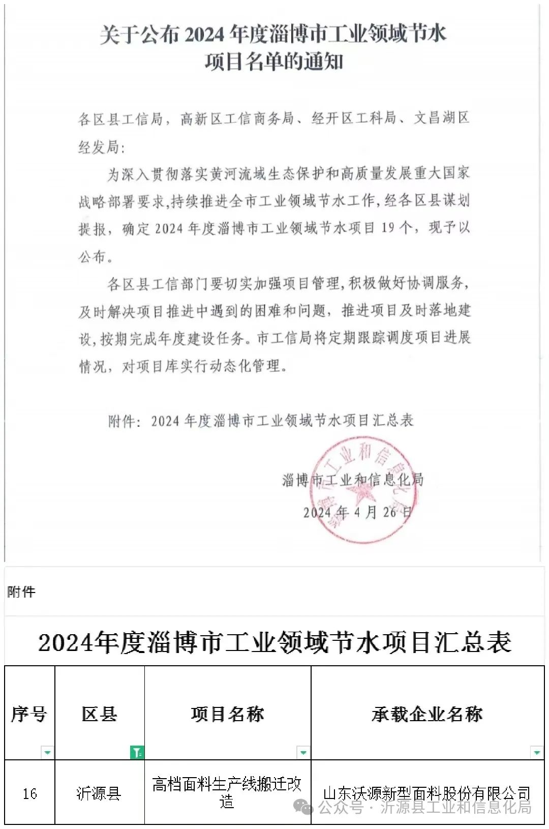 为深入贯彻落实黄河流域生态保护和高质量发展重大国家战略部署要求,持续推进全市工业领域节水工作。近日,淄博市工业和信息化局公布2024年度淄博市工业领域节水项目名单,山东沃源新型面料股份有限公司高档面料生产线搬迁改造项目成功入选。