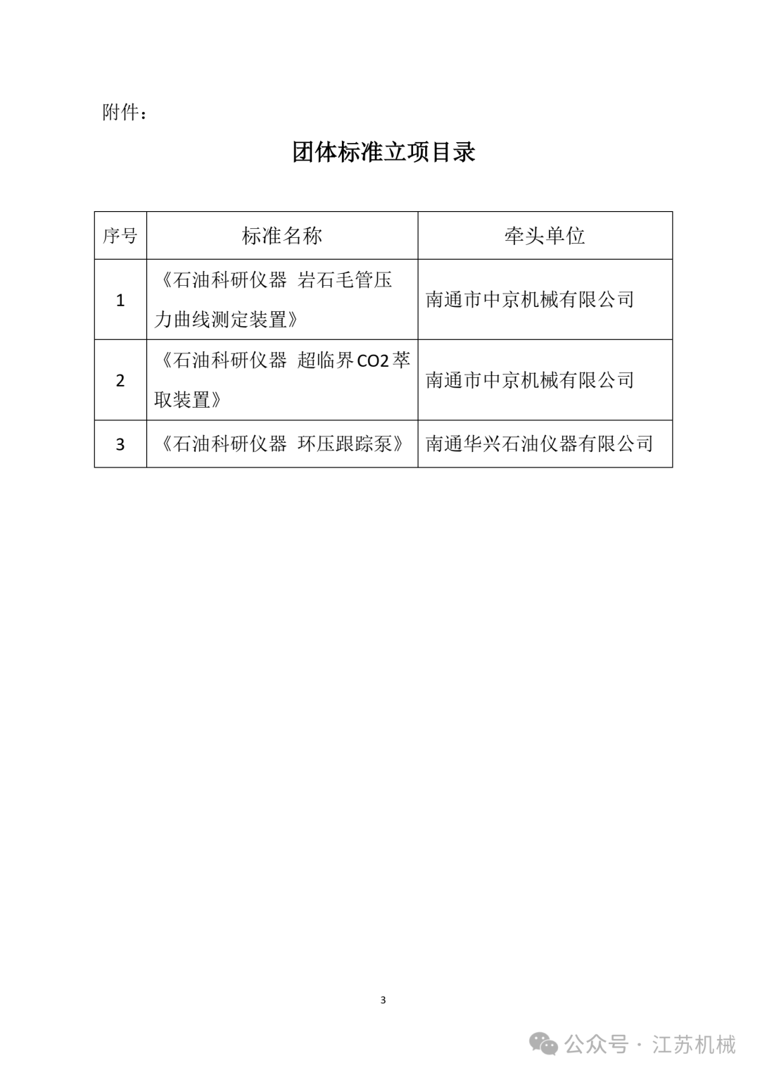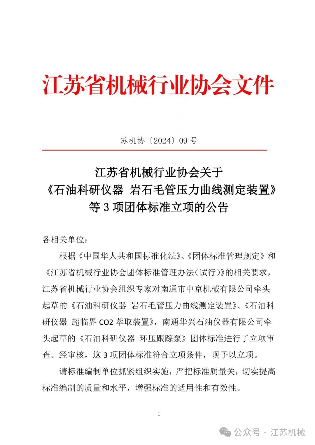 【团体标准】江苏省机械行业协会关于《石油科研仪器 岩石毛管压力曲线测定装置》等3项团体标准立项的公告