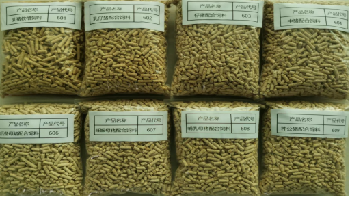 产品:1501保育猪全价配合颗粒饲料、1603-125育肥猪浓缩饲料、1823育肥猪浓缩饲料