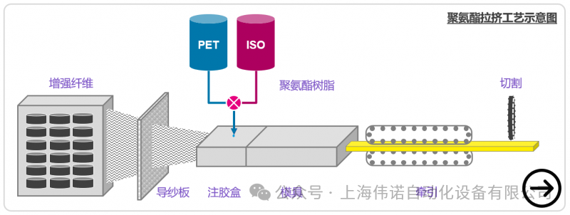 复合材料拉挤成型工艺是在牵引设备的牵引下,将连续纤维或其织物进行树脂浸润并通过成型模具加热使树脂固化,来生产复合材料型材的工艺方法。