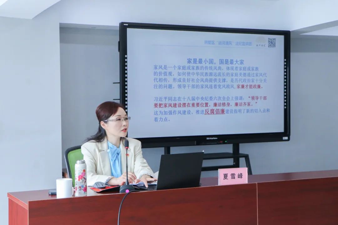 家风优则作风优,家风正则党风正,家风纯则政风纯,家风清则企风清。为深入贯彻落实习近平总书记关于家庭家教家风建设的重要论述,充分发挥家庭在新时代廉洁文化建设中的重要作用,营造廉洁从业的浓厚氛围,4月29日上午,农都公司邀请“运河清风”法纪宣讲团成员、区委第二巡察组夏雪峰副组长,作“弘扬传统家风 倡导勤廉为本”专题培训。