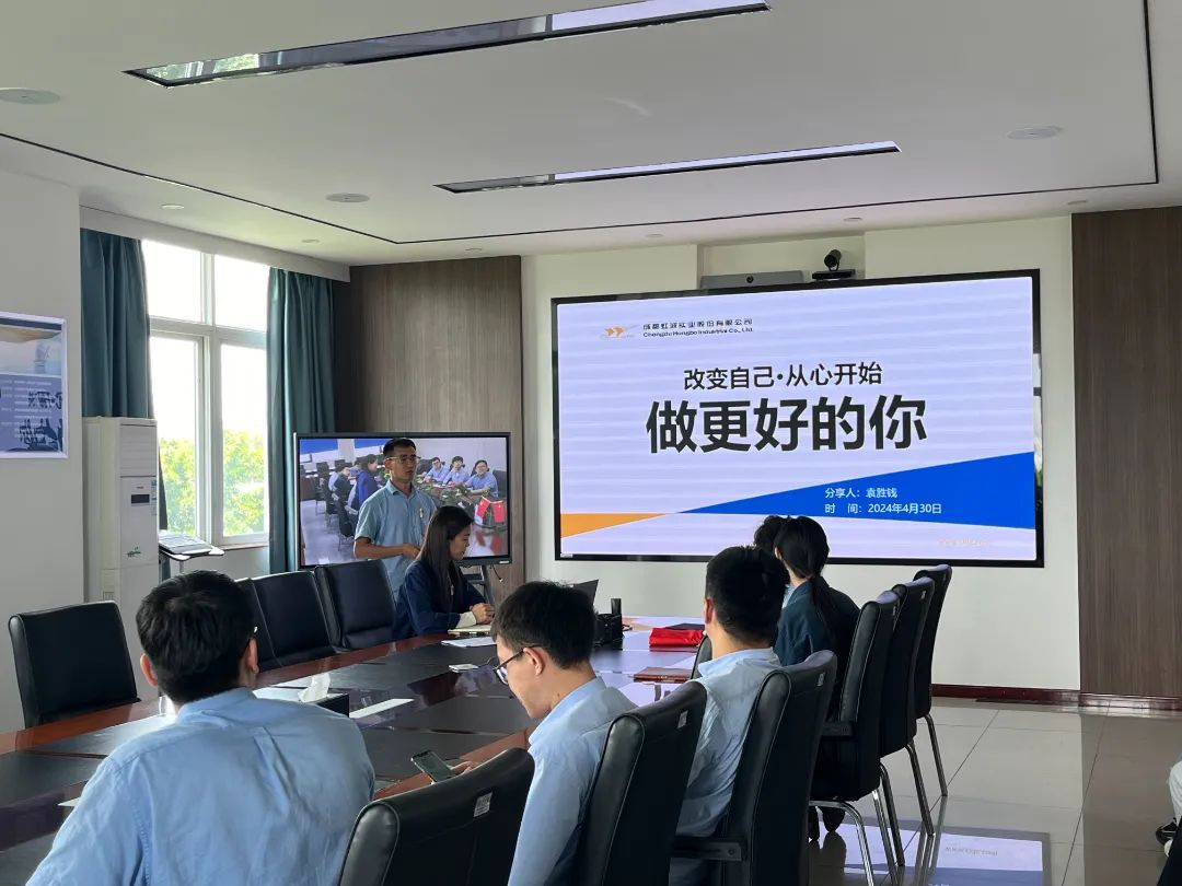 在分享环节,优秀青年袁胜钱以“改变自己,从心开始,做更好的你”为主题,向我们娓娓道来了“积极主动 自信坚韧”的五个关键,以青春视角讲述青春故事,激励公司广大团员青年顺利高效的开展自己的工作,更好更快融入虹波大家庭。
