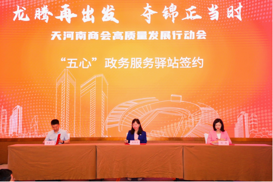 4月22日,在天河南商会高质量发展行动会会议现场,天河区第一个以优化营商环境,助力企业高质量发展的"五心政务服务驿站"正式挂牌。该驿站是由天河南税所,天河南监管所和天河南街道商会共同打造的,是天河南进一步优化营商环境的重要暖企举措。