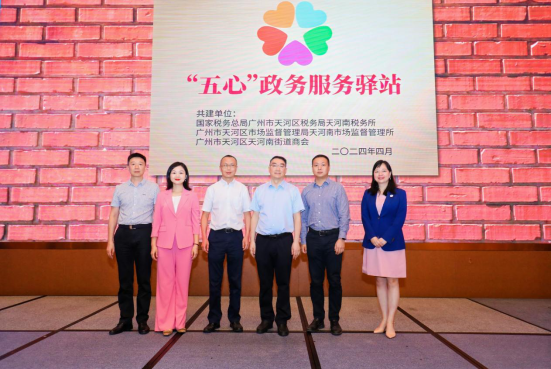 天河区税务局天河南税务所、天河区市场监督管理局天河南市场监督管理所、天河区天河南街道商会三方共同签订《共建“五心”政务服务驿站协议》。三方作为服务地区经济发展和保障社会民生的重要政府机构、地方行政机关及社会组织,本着“资源共享、互促互学、注重实效、服务民生”的原则,共同打造了服务天河南各类经营主体的平台——“五心”政务服务驿站,将政务服务的“热心、真心、诚心、细心、耐心”五心有机融合,对外服务业户,对内加强各单位间交流沟通,实现共建共治共享,达到推动发展、服务群众、凝聚人心,提升天河南竞争力和吸引力的目标。