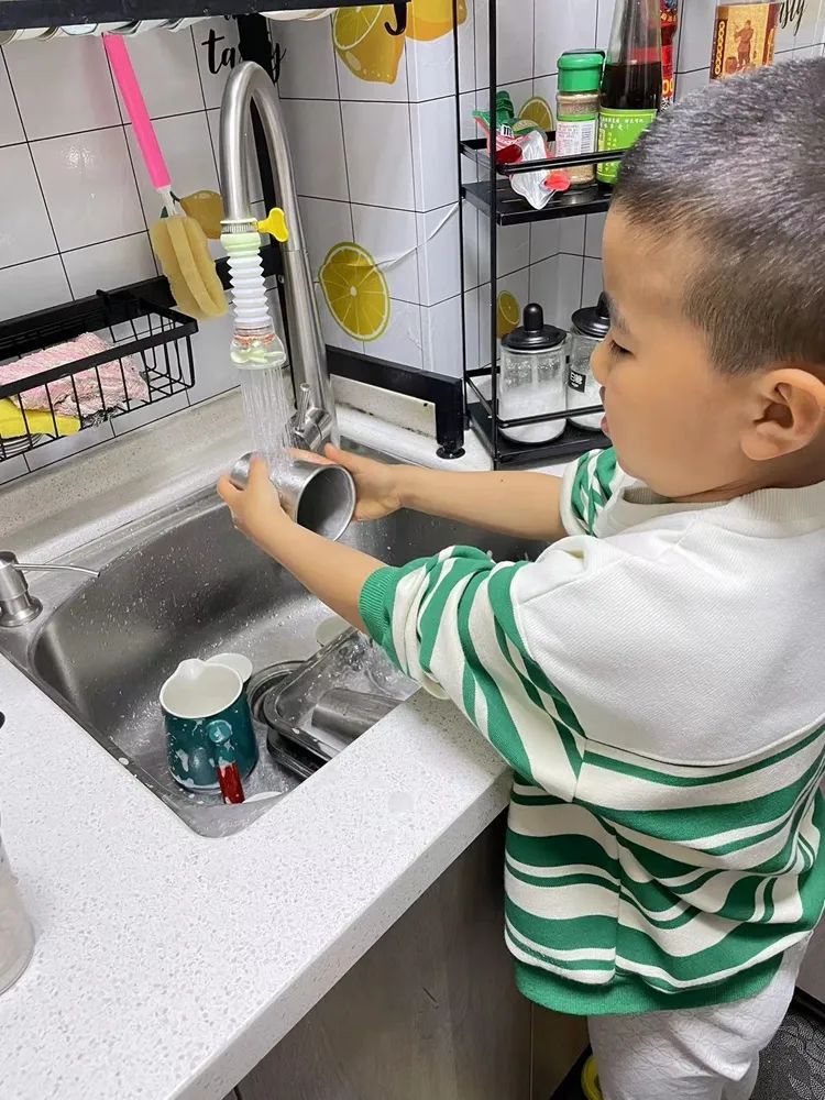 孩子作为家庭成员,在参与家务劳动过程中,体会到了长辈们的辛苦,知道了要珍惜爸爸妈妈的劳动成果,同时收获参与家务劳动带来的幸福和快乐。