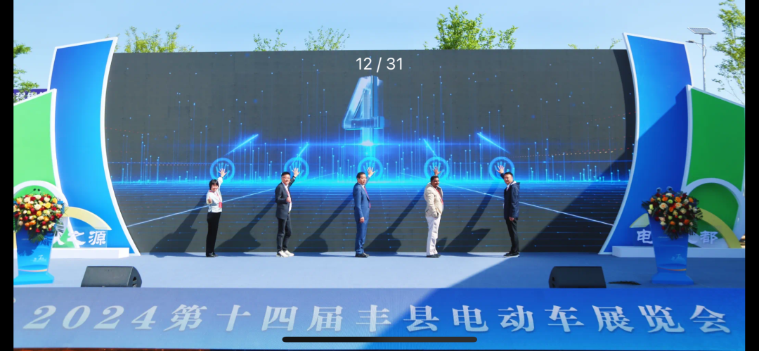 开幕式上,安继文、颜奕鸣、张红等共同为2024第十四丰县电动车展览会启幕,预祝本届展会圆满成功。(业务三部供稿)