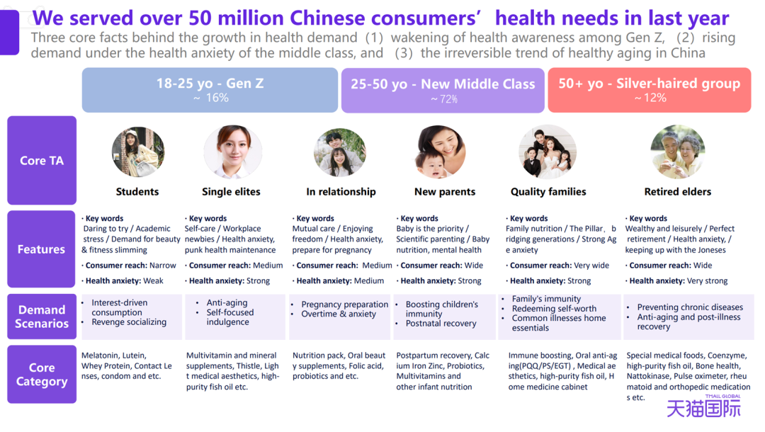 从推出专注大健康赛道的IP“天猫国际第四餐”,到覆盖疾病“预防、改善、治疗”三重需求而打造全民“进口紫药箱”,天猫国际不断引领行业趋势、发掘品类增量,在2023年为超过5000万中国消费者提供科学丰富的海外健康新商品,满足从个人健康到全家健康的消费新需求。