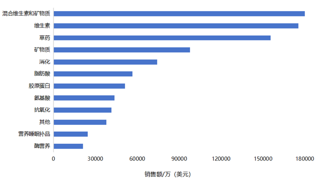图:2023年1月-12月美国亚马逊平台膳食补充剂细分类目销售额