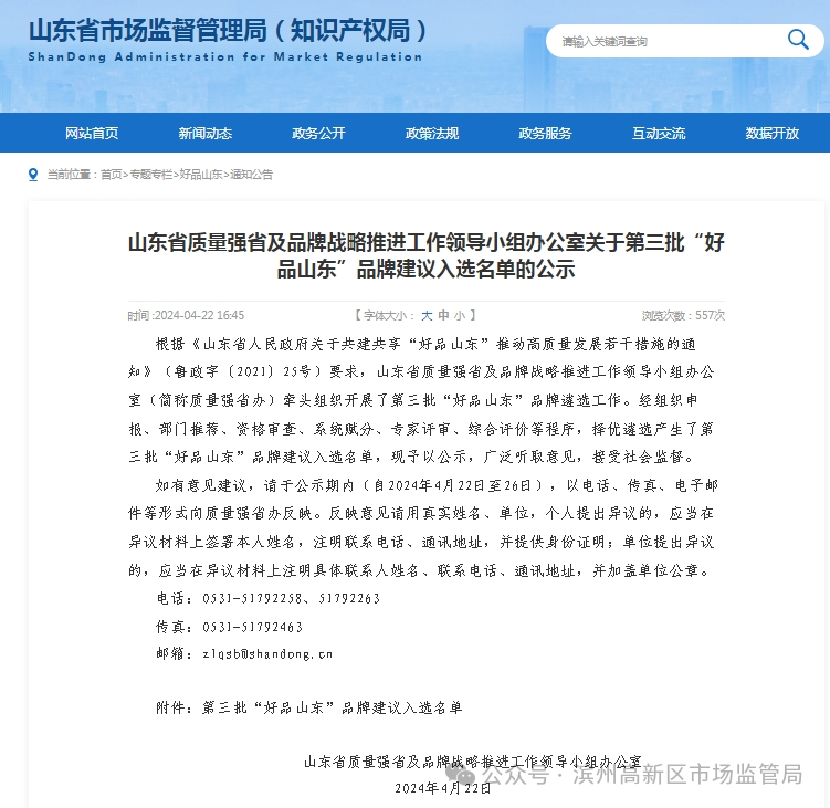 近日,山东省质量强省及品牌战略推进工作领导小组办公室发布了