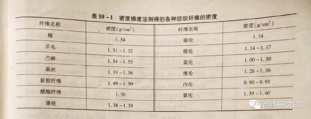用密度梯度法测得的各种纺织纤维的密度见表10 -1。