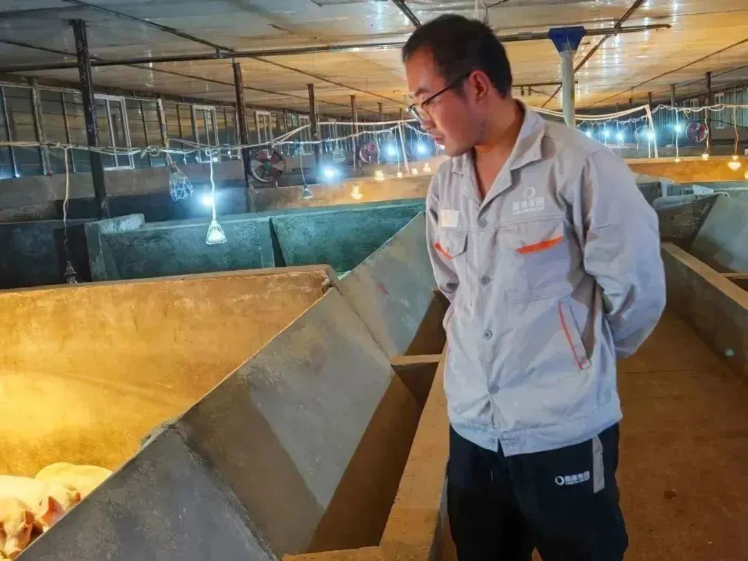 而在饲养过程当中,只要于睿有关于生产上的问题,生产管理专员都会第一时间进行解答,并且还会定期进场来给于睿做指导,让于睿能完全胜任1000头肥猪的饲养任务。
