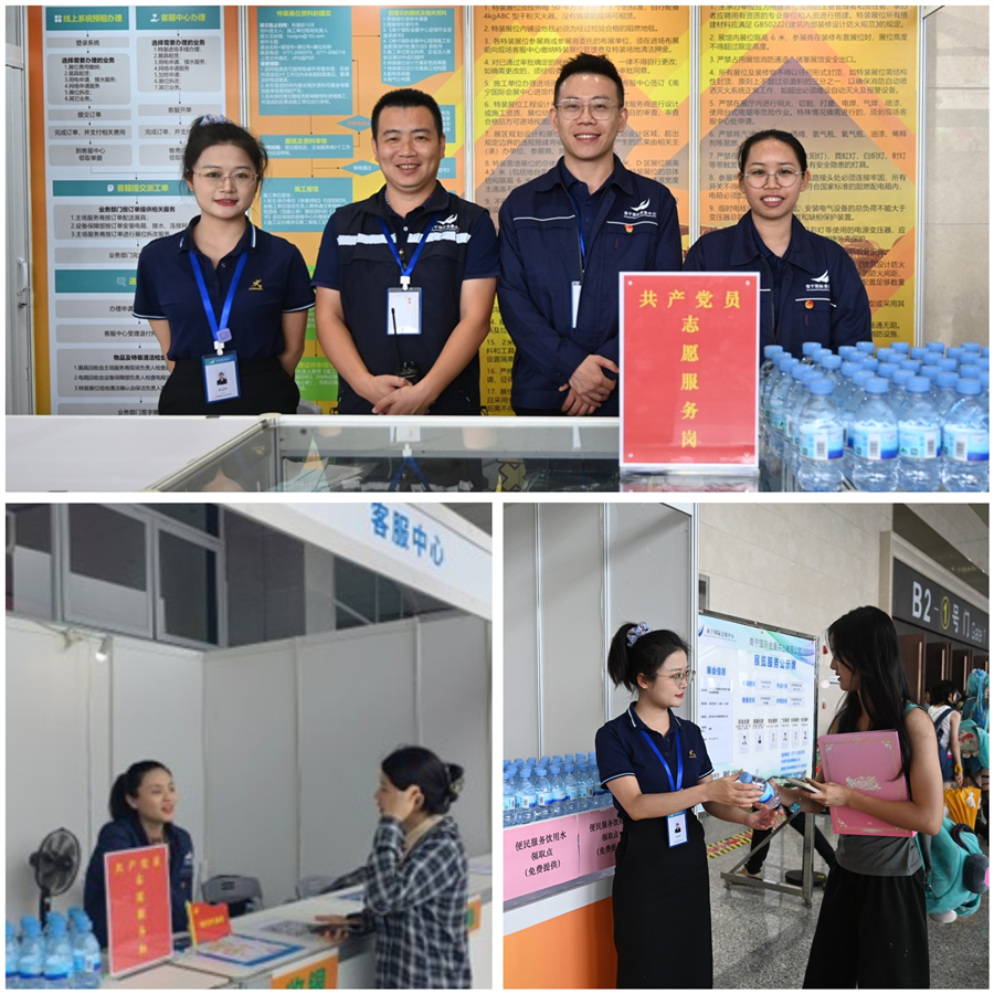 “五一”国际劳动节期间,南宁国际会展中心迎来“三展同开”,会展中心公司党支部的党员同志们积极践行“一名党员一面旗”,奋勇争先,奋战在一线开展党员志愿服务活动,为广大客商提供周到贴心的服务,充分发挥党员先锋模范作用。在繁忙的展会现场,党员同志们以身作则,带领全体员工投身服务,确保展会各项工作顺利进行,整个现场秩序井然,各个岗位的党员都展现出了极高的职业素养和服务意识。