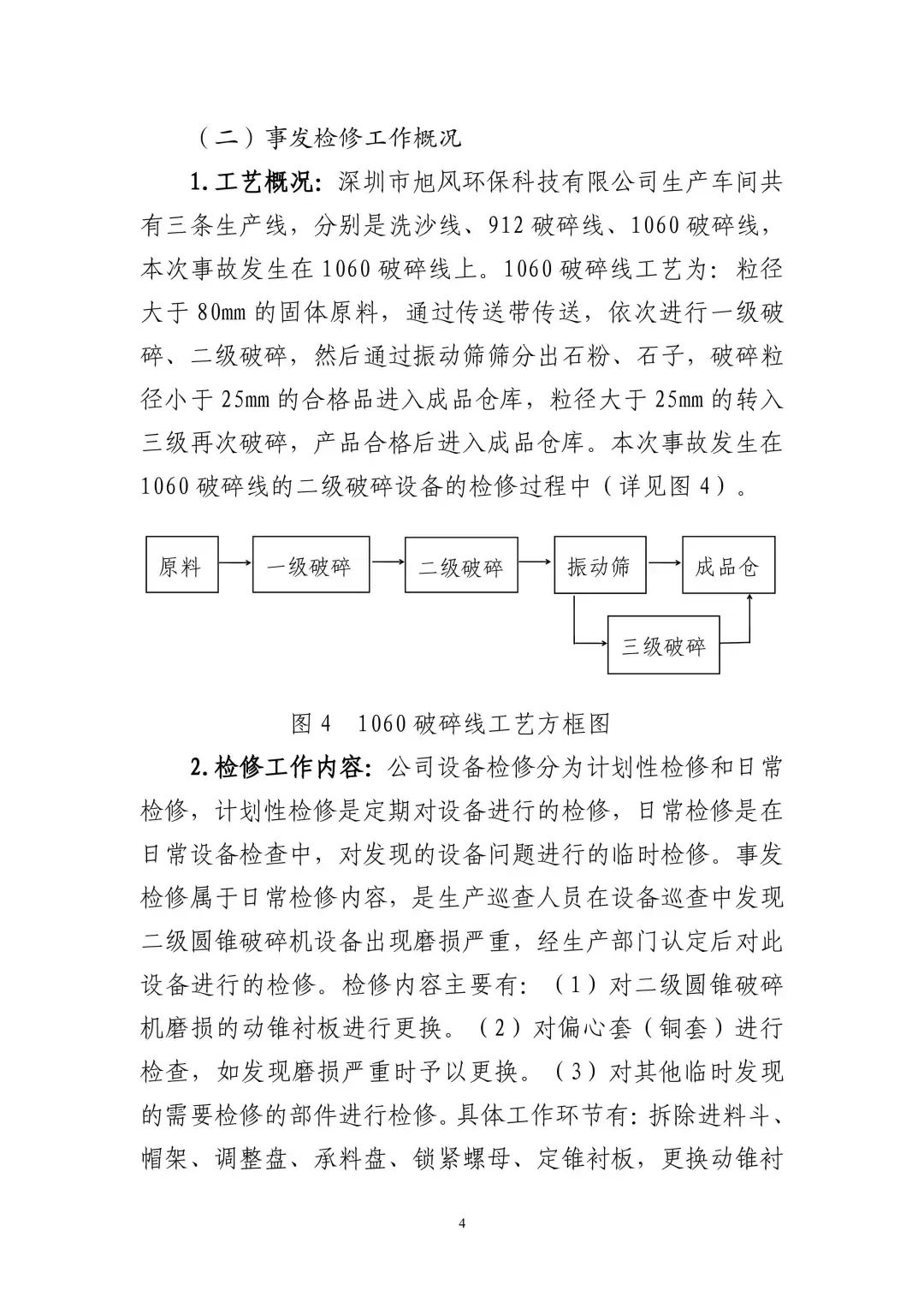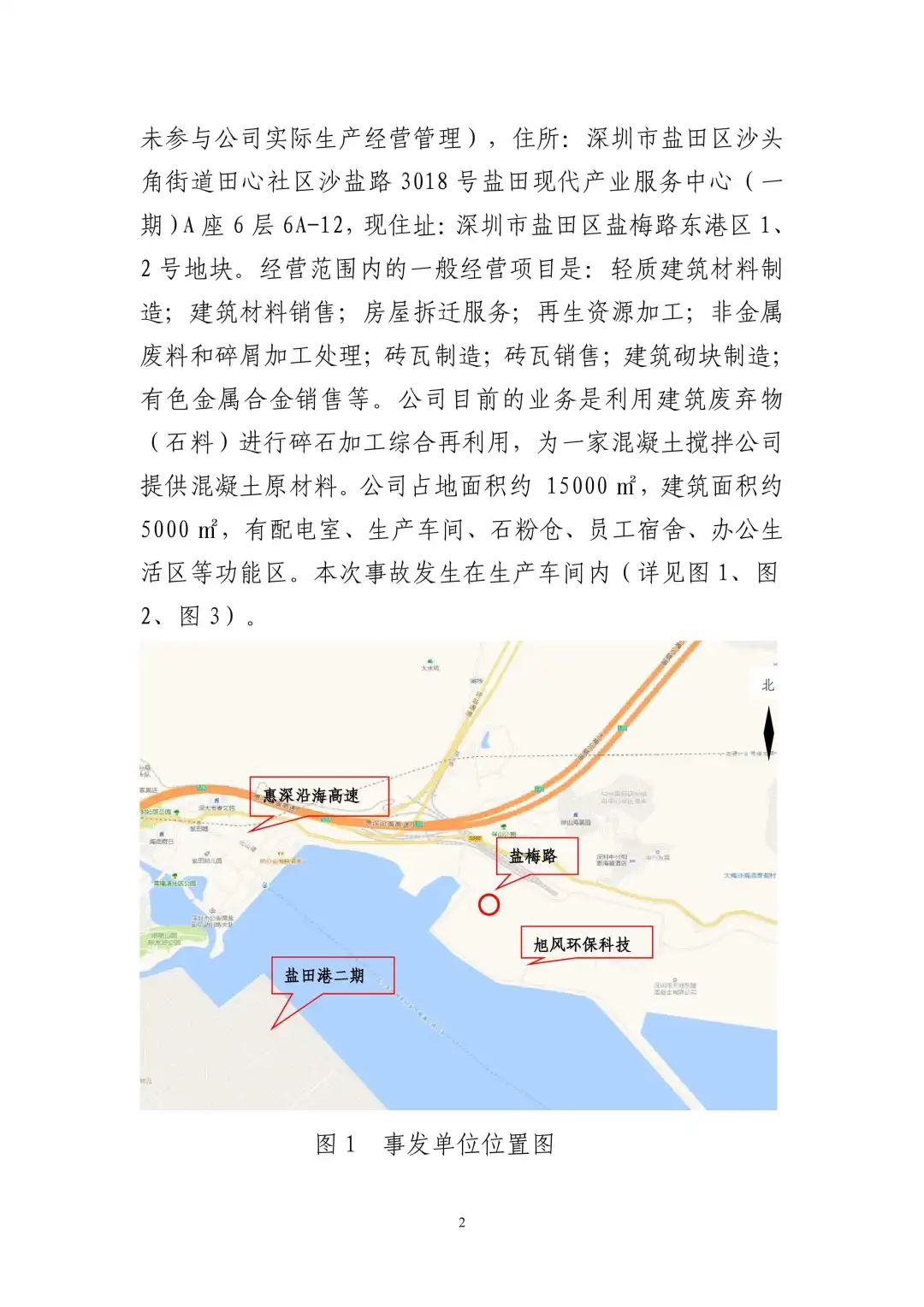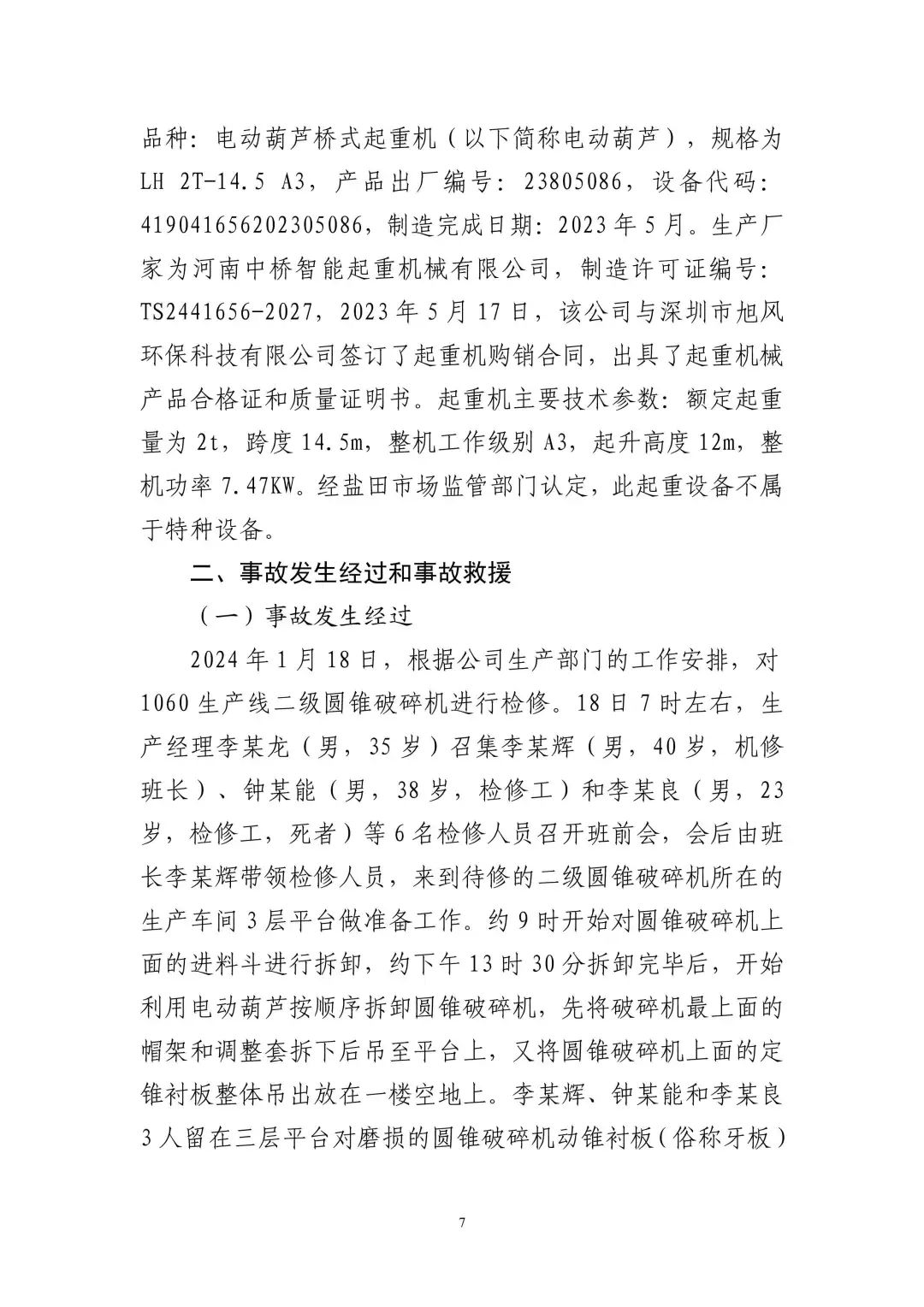 2024年1月18日16时45分左右,深圳市盐田街道盐梅路东港区1、2号地块,深圳市旭风环保科技有限公司1名检修人员,在公司生产厂房内对碎石设备进行检修吊装作业时,被吊装物砸伤,经抢救无效死亡。事故直接经济损失212.08万元。