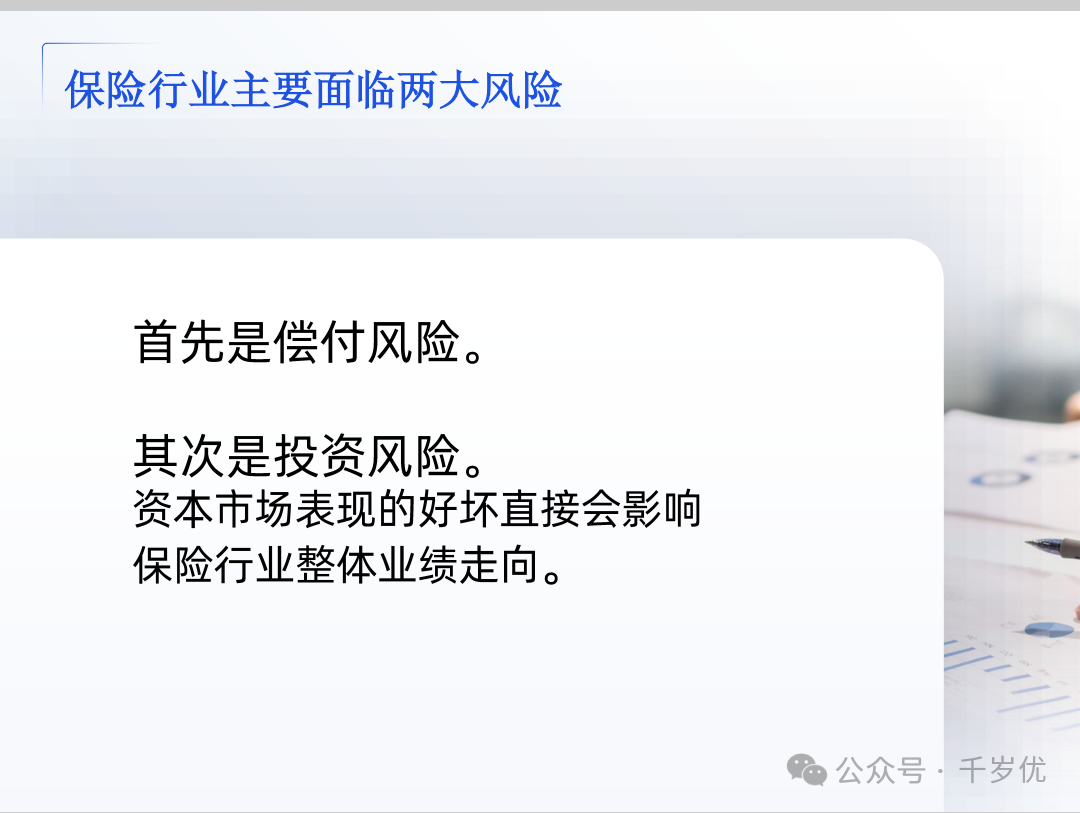 这个是我们寻找保险行业好标的的重要指标。也是为什么保险公司盈利很不稳定的原因。由于资本市场表现的好坏会直接影响保险行业,所以保险具有很强的周期性的,大家可以知道如何布局了吧,在经济周期下行和复苏期进行布局最好。