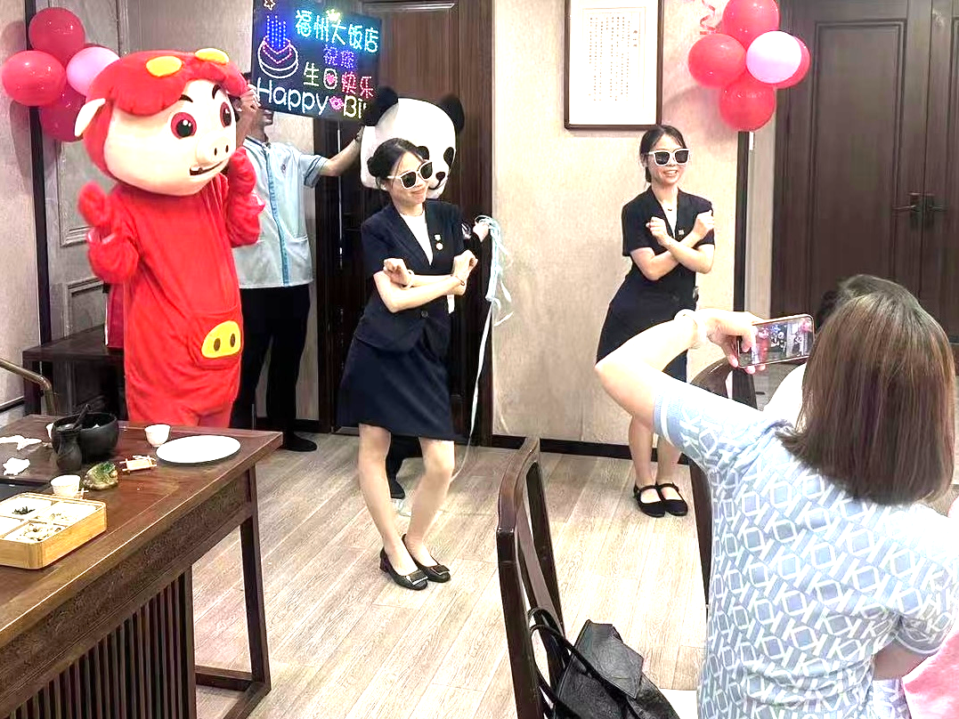 饭店宴会氛围小组精心编排流行舞蹈,为生日宴宾客送上特别的祝福,深受宾客喜爱。