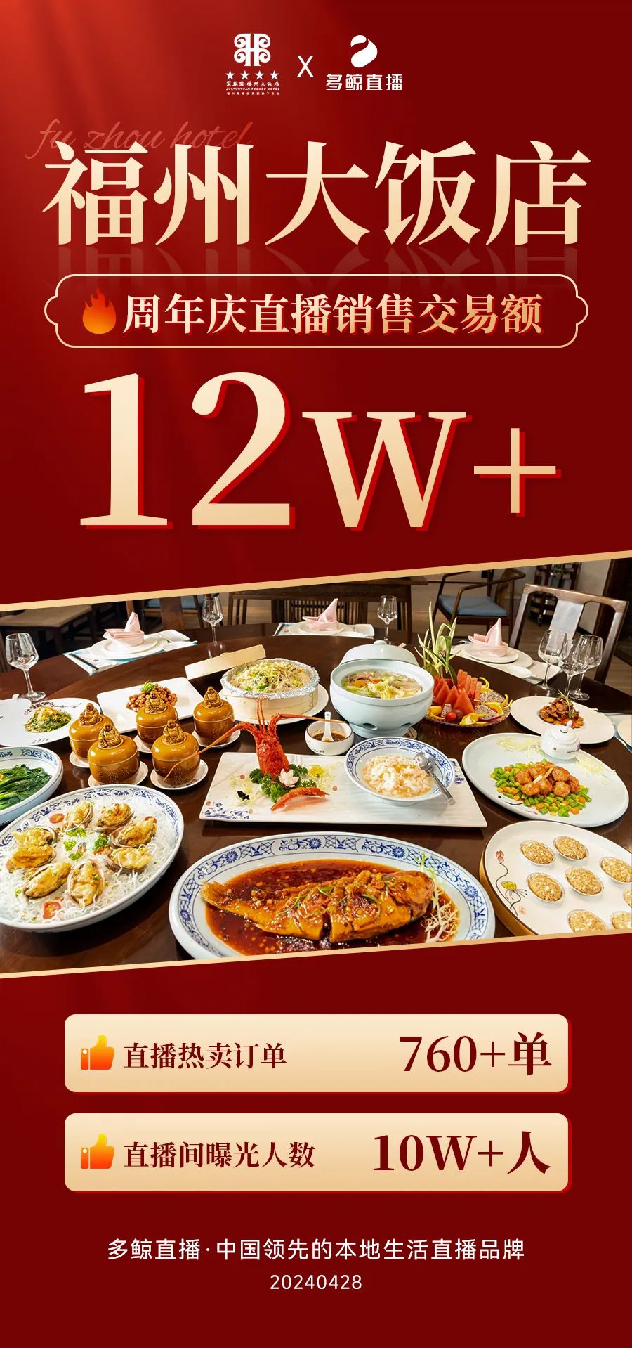 饭店举办“二十五周年庆”直播活动,吸粉96人,累计成交756单,再创销售佳绩,提升饭店品牌影响力和经济效益。