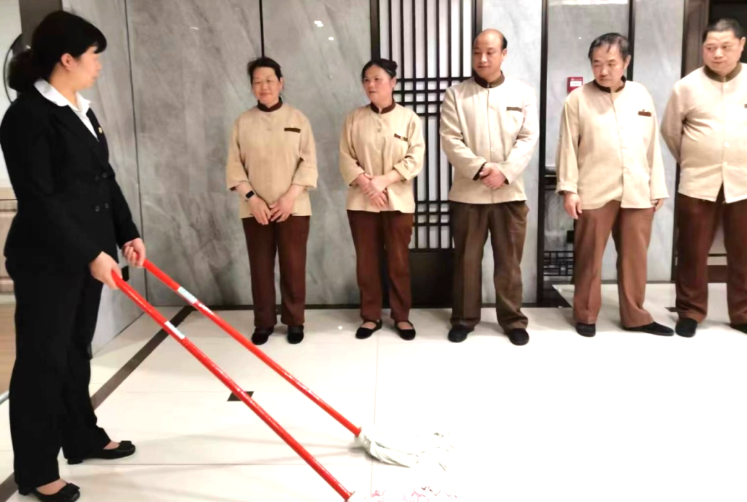 客房部组织保洁员、房务员,开展服务规范化培训。